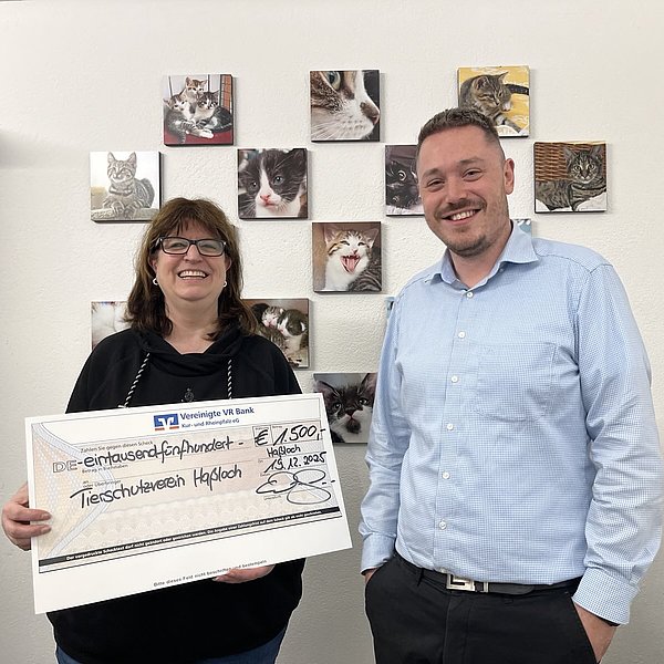 Herr Dominik Wittmann, stellv. Regionaldirektor und Marktleiter Haßloch und Böhl-Iggelheim, hat uns am 19.12.2025 für die Scheckübergabe im Tierheim Haßloch besucht. Wir freuen uns sehr, dass Herr Wittmann auch noch Zeit für eine Führung durch das Tierheim hatte. Er zeigte sich beeindruckt von unserem täglichen Engagement für den Tierschutz und hat sich einen Überblick über unsere aktuellen Baustellen verschafft.