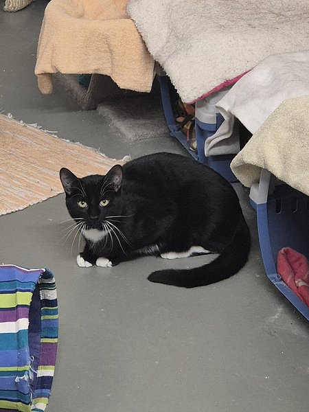 Cookie (weibl., geb. ca. 10/23) war eine Streunerin, ist inzwischen an Menschen interessiert, braucht aber noch etwas Zeit, um aufzutauen. Sie freut sich deshalb auf ein neues Zuhause bei Dosenöffnern, die noch Geduld mit ihr haben.
