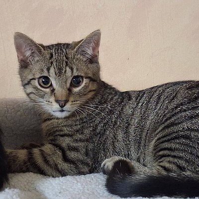 * Hannes (getigert): Ein kleiner Charmeur! Er ist sanftmütig, aber auch ordentlich vorwitzig. Wenn es etwas zu entdecken gibt, steckt er als Erster die Nase rein.